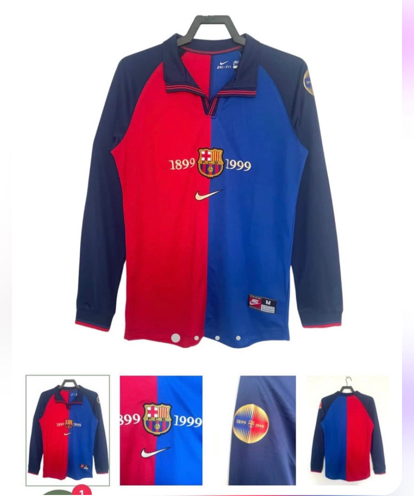 Barcelona 100 Years Retro Shirt 1999 Blue and Claret - long